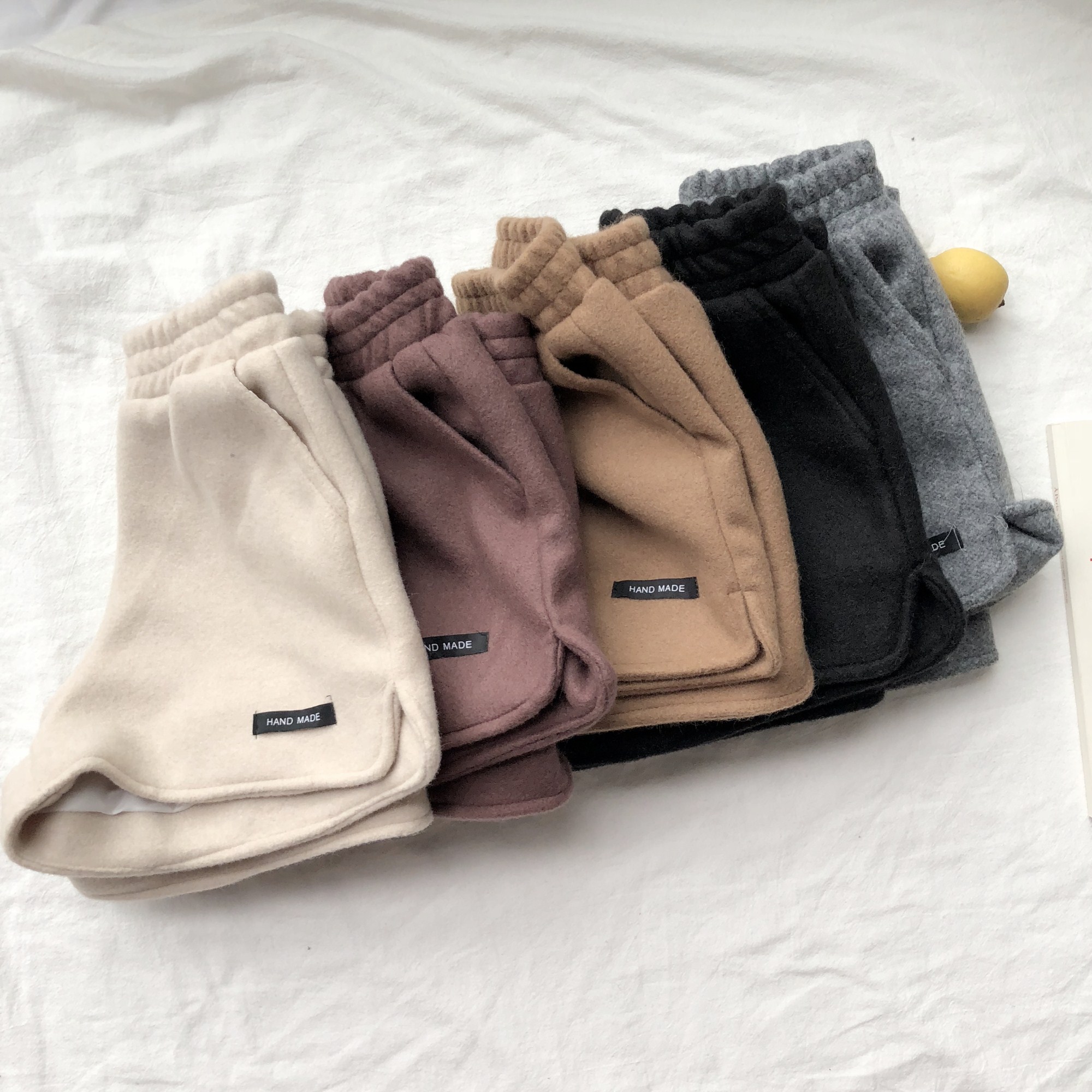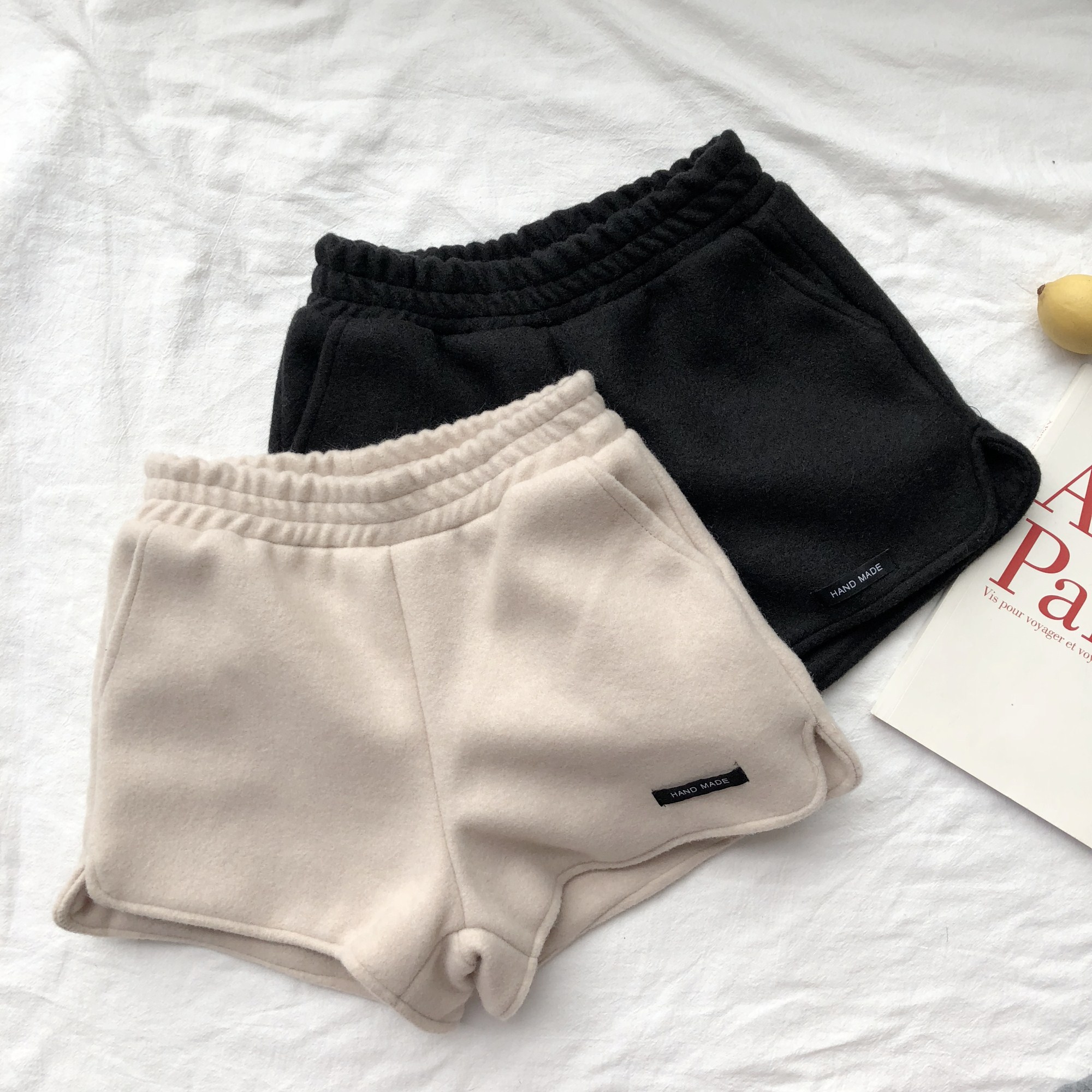 / 韓版新款百搭加厚毛呢寬松短褲子松緊腰褲高腰直筒褲休閑闊腿褲女