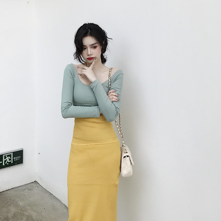 秋裝新款時尚套裝圓領長袖螺紋長袖T恤打底復古包臀抹胸連衣裙女