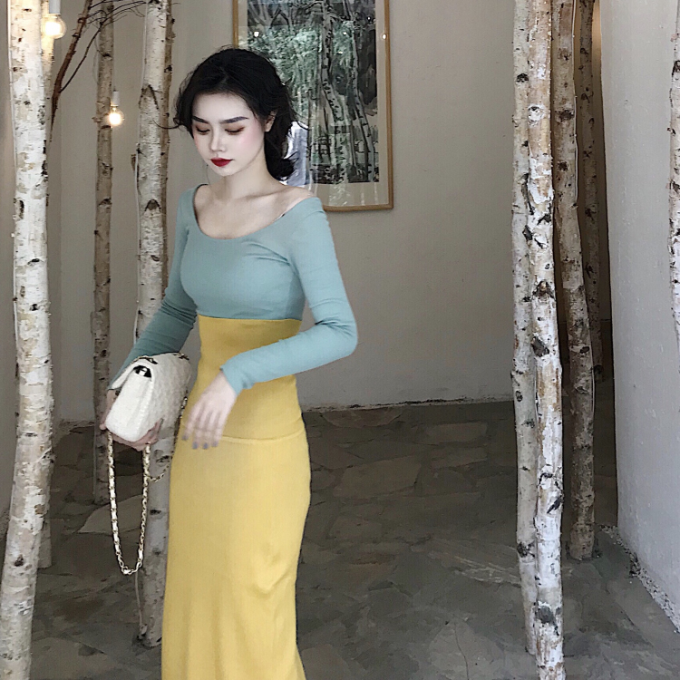/ 秋裝新款時尚套裝圓領長袖螺紋長袖T恤打底復古包臀抹胸連衣裙女
