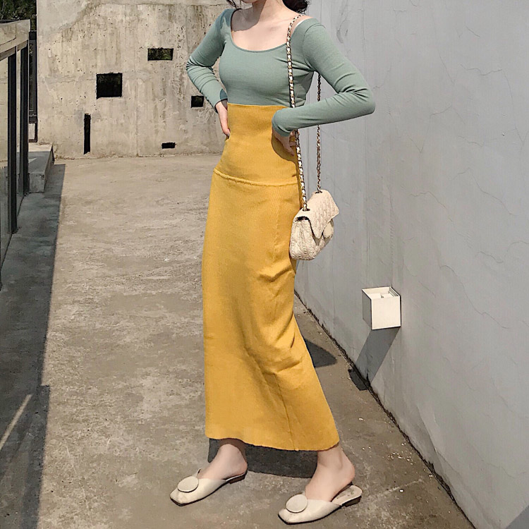 豆沙綠上衣|黃色裙