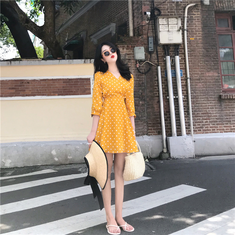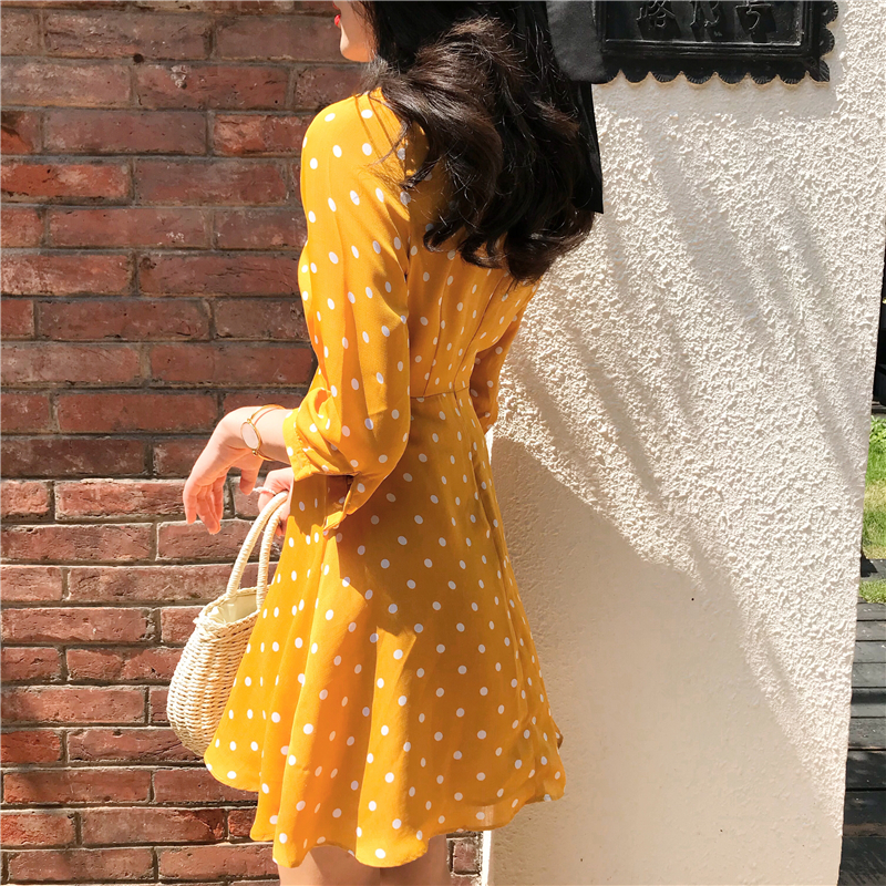 這款波點裙可以說是非常顯白顯瘦啦,只要選擇對碼數,就會像量身定做的一樣高腰線設計非常顯腿長腰細,長度165大概穿到大腿中部