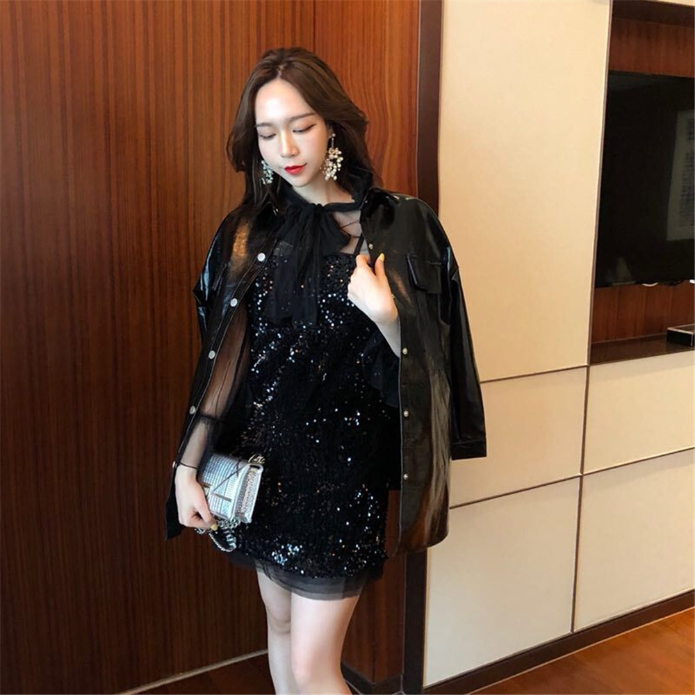 / 秋季新款韓版女神范亮片氣質名媛兩件套吊帶連衣裙網紗裙時尚套裝