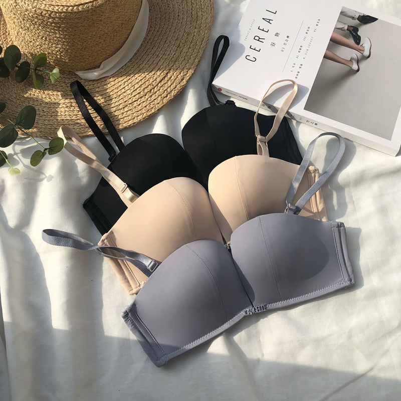 無肩帶內衣少女聚攏無鋼圈無痕防滑上托小胸四角杯無鋼圈隱形文胸