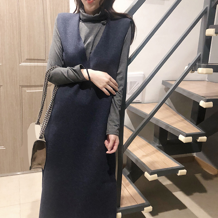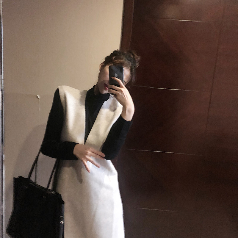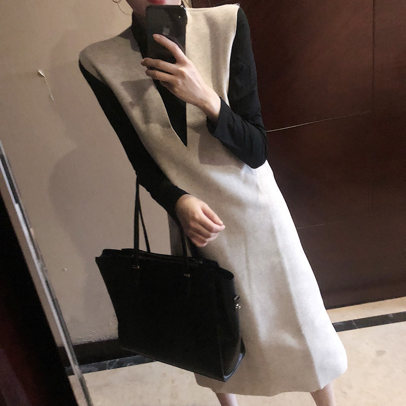/ 高領修身顯瘦打底衫兩件套寬松毛呢背心連衣裙套裝女秋2018新款潮