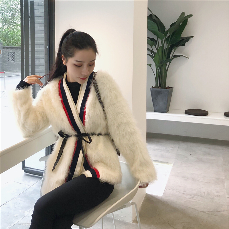 / 韓版chic亮晶晶毛絨新款秋冬時尚百搭寬松顯瘦收腰長袖開衫外套女