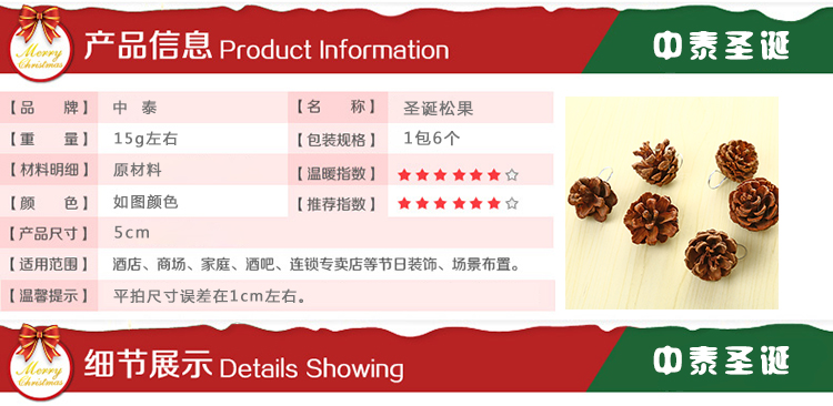 / 圣誕節裝飾 圣誕樹松果掛件 原色天然真松果 5cm6cm松果一包6個