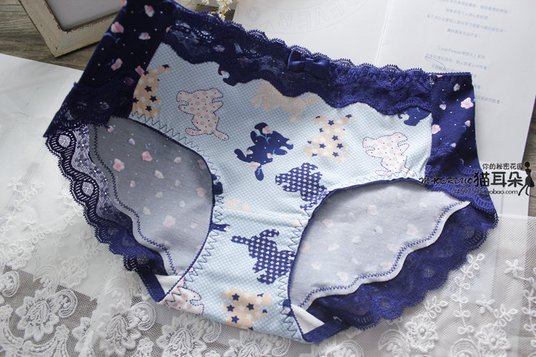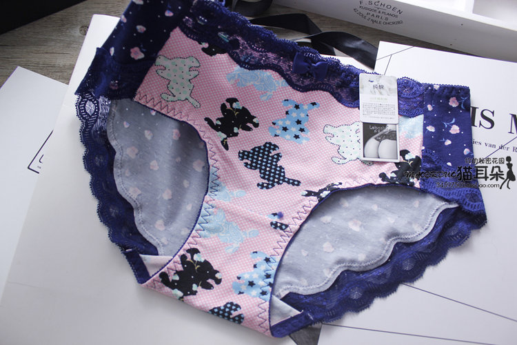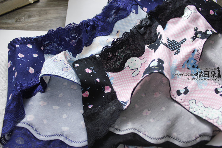 文藝俏皮的一款純棉小內 面料柔軟細膩,親膚透氣,健康的舒適的 褲邊選用優質的撞色蕾絲鑲邊,給肌膚舒適的感覺 甜美淡雅,減齡清新,推薦! 中等版型,三角中腰基本款