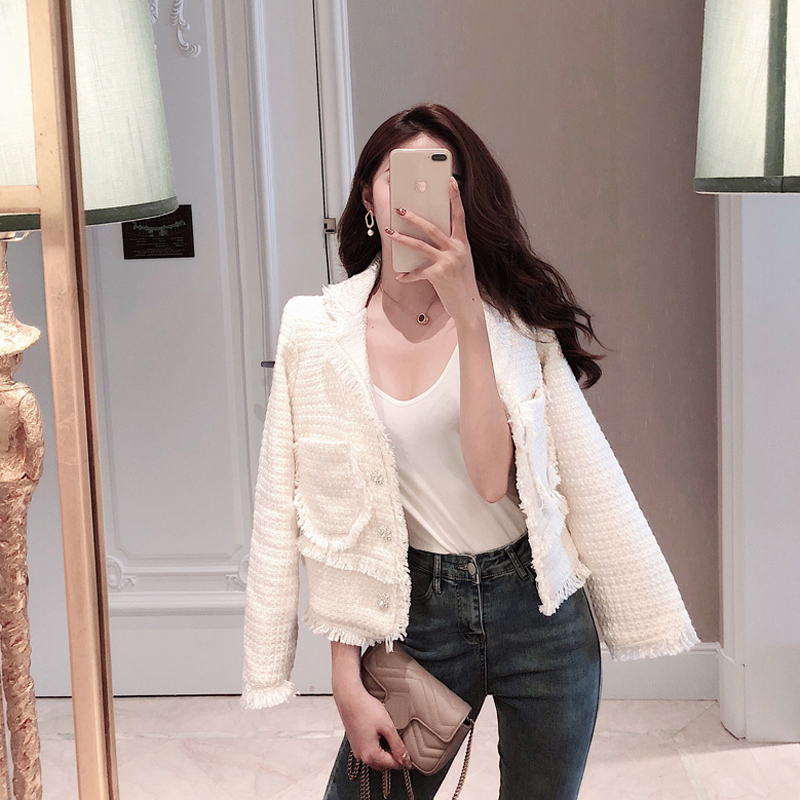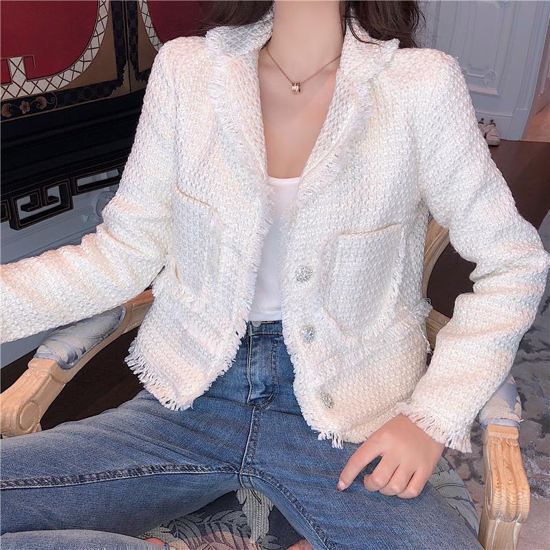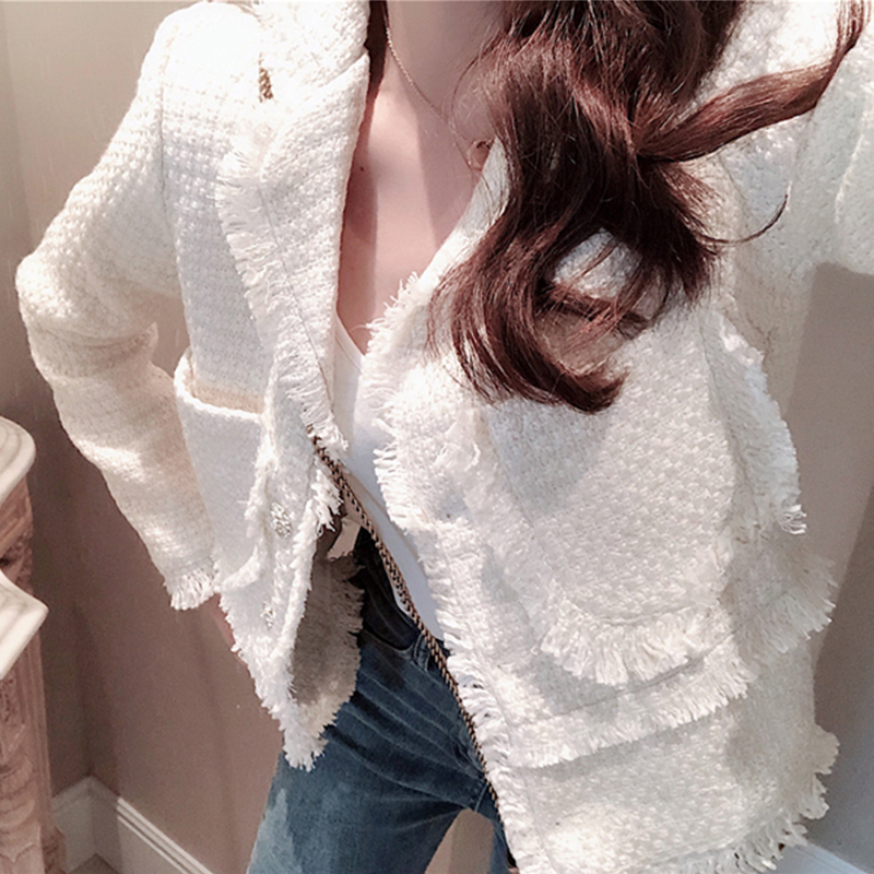 / 小香風秋季女裝新款韓版百搭復古毛毛邊開衫時尚氣質粗花呢外套潮