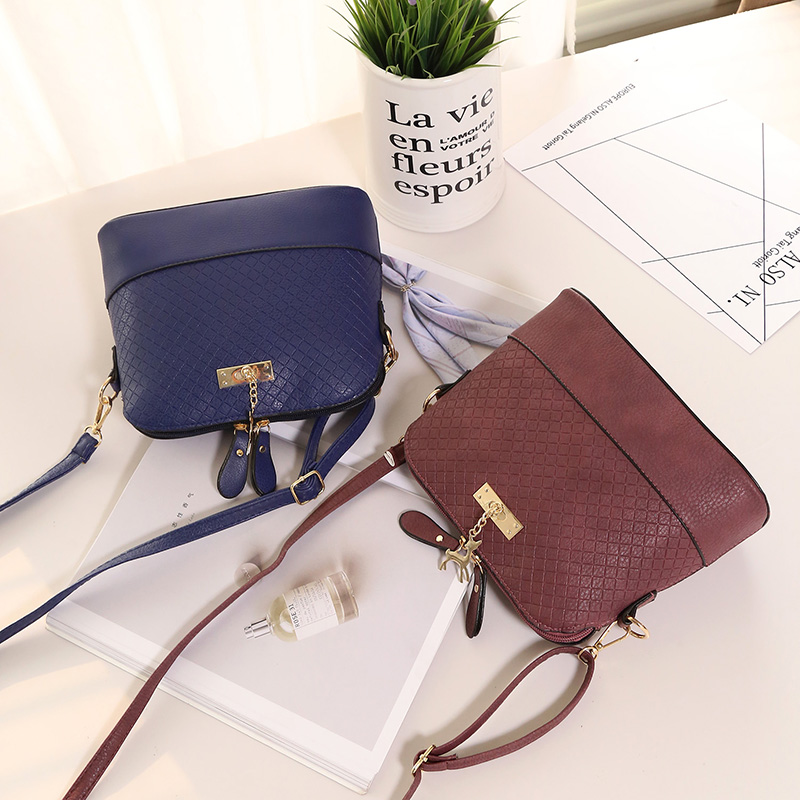 / 2017春季新款韓版時尚壓痕小鹿單肩貝殼包潮流百搭格子紋斜挎女包