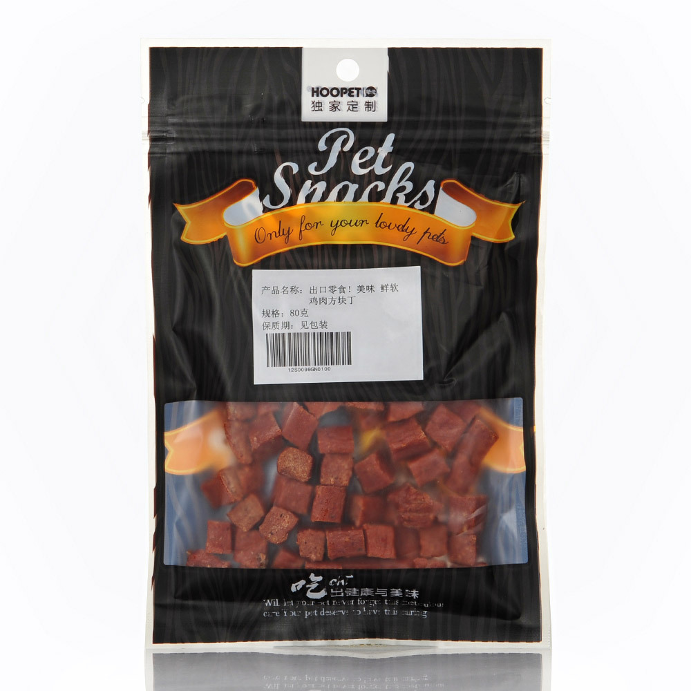 柔軟而富有韌性的雞肉方丁,不僅狗狗見了抓狂,就連hoopet聞著也很想吃噢!!除了能補充愛犬每日所必須的營養外,經常性食用還可幫助狗狗益智、健齒。