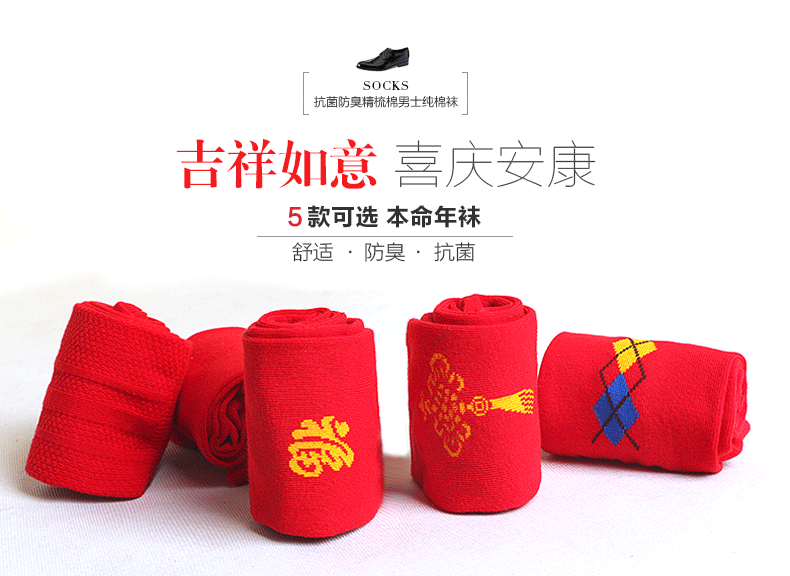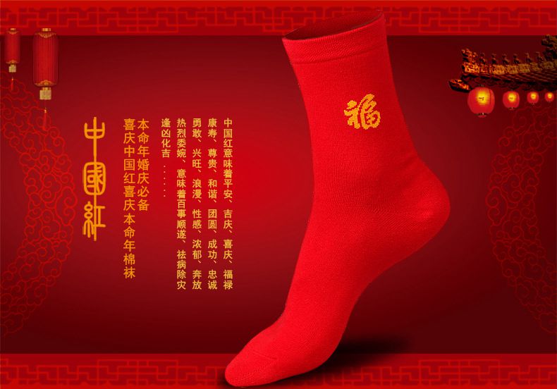 |        商品描述: 中國紅喜慶本命年踩小人大紅男士襪子 秋冬純棉新款 材質 :80%棉 17%聚酯纖維 3%氨綸  均碼 適合男士39--43    福字星高照  英倫菱形  中國福結      寬口金邊編織     腳底毛圈純紅色   注意了,只有純紅色這一個款,足底是毛圈的,   注意了,只有純紅色這一個款,足底是毛圈的,     |