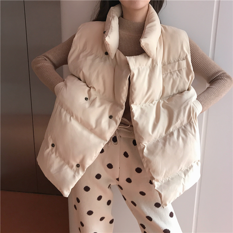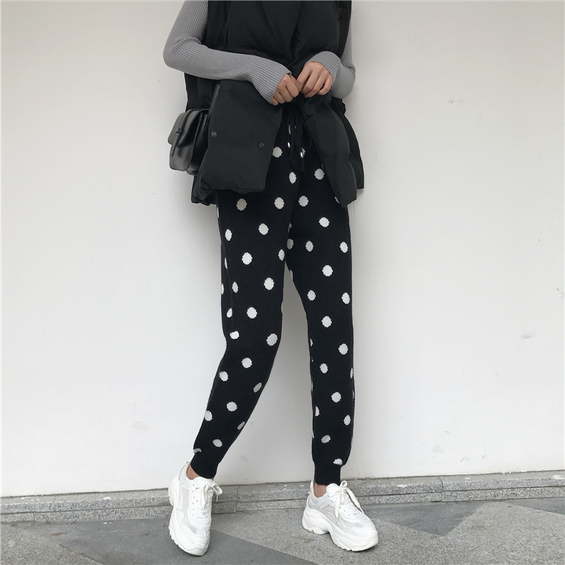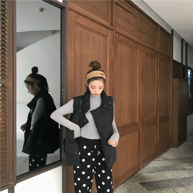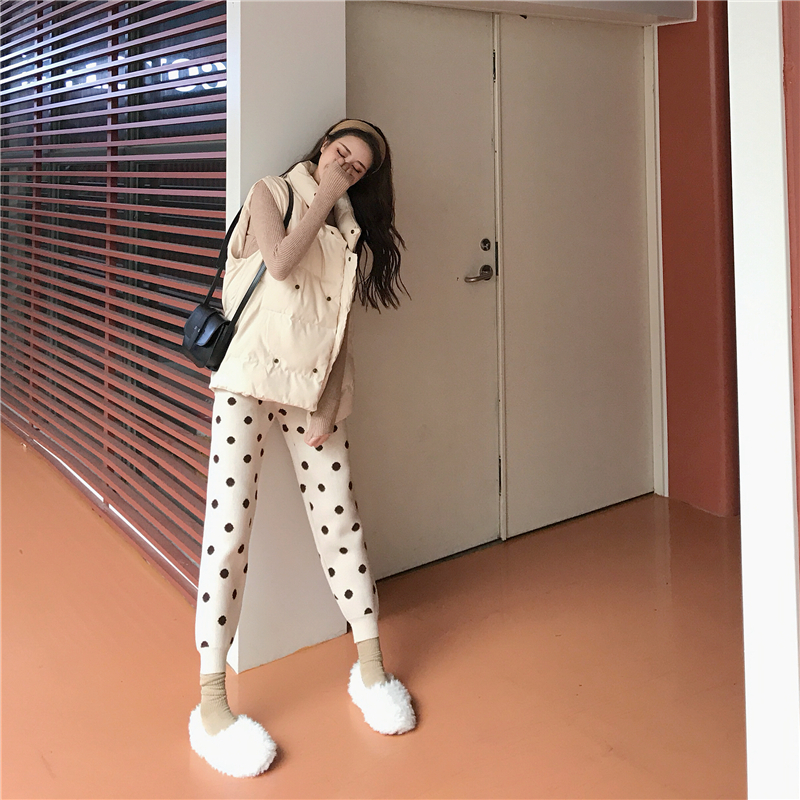 / 韓版寬松保暖棉馬甲女秋冬2018新款+復古加厚針織波點蘿卜褲套裝