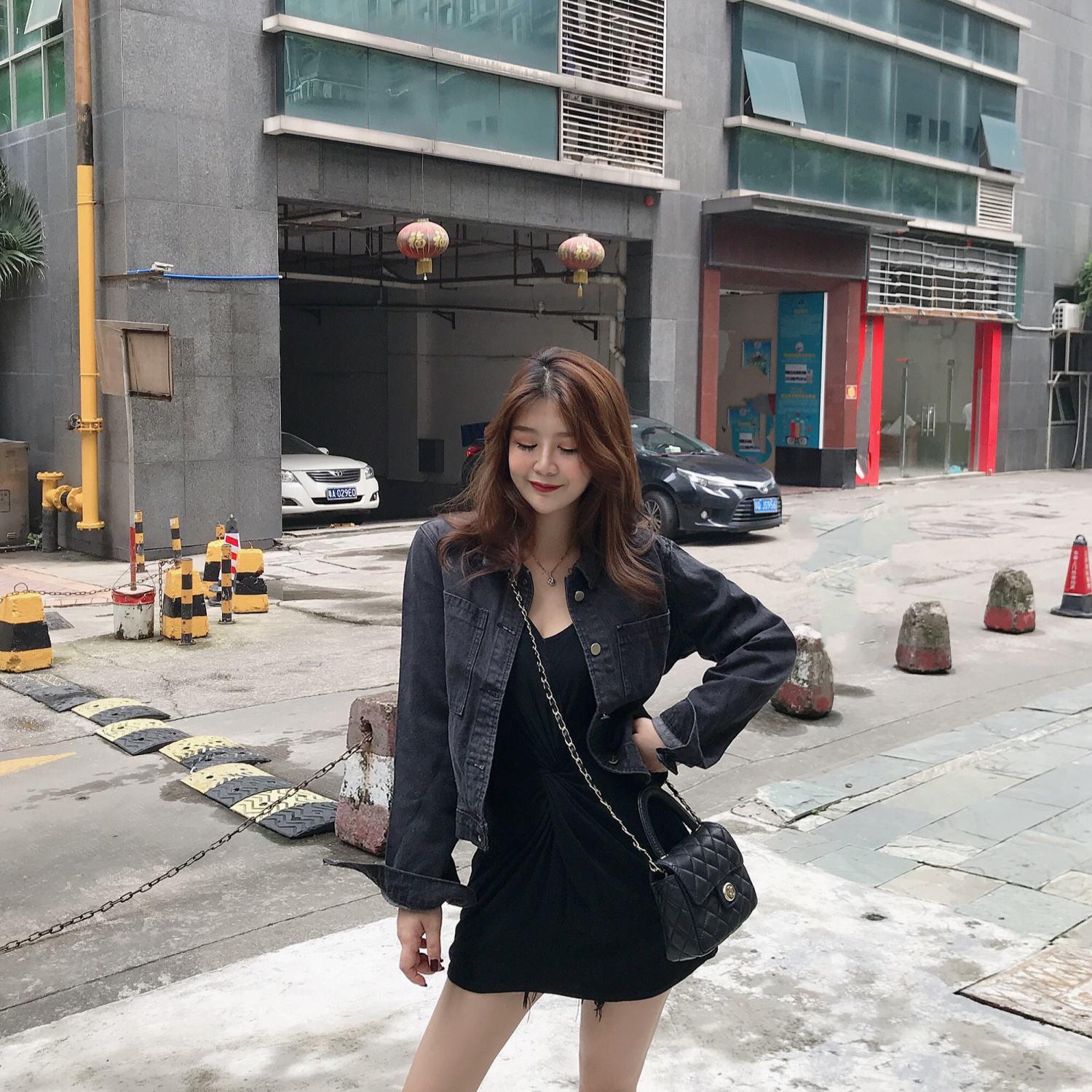 港味復古chic風2018新款秋季時尚百搭氣質顯瘦洗水短牛仔外套女潮