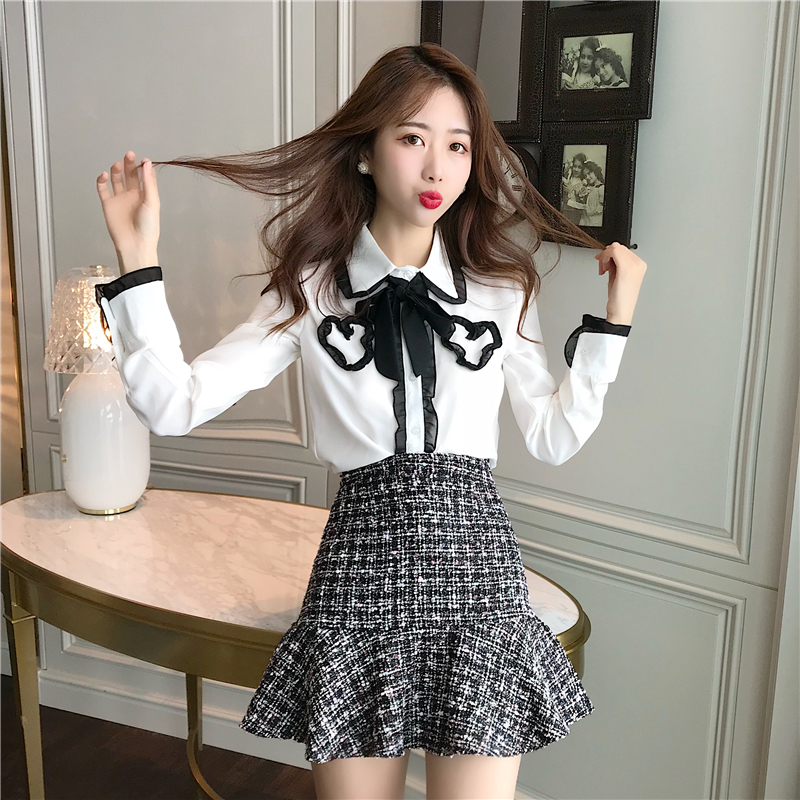 / 秋季套裝女時尚兩件套2018新款小香風雪紡襯衫魚尾半身裙休閑學生