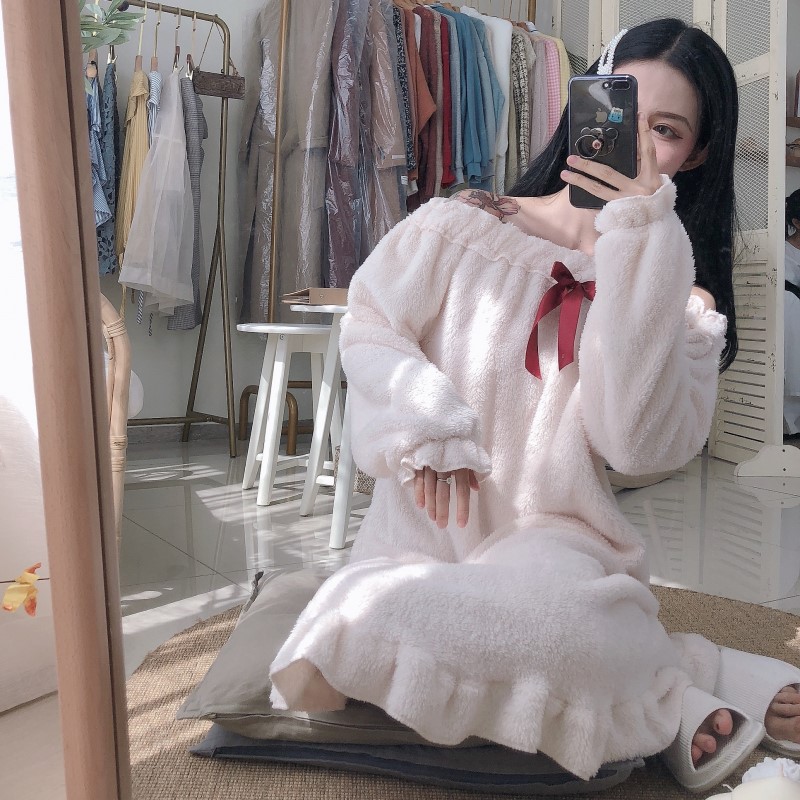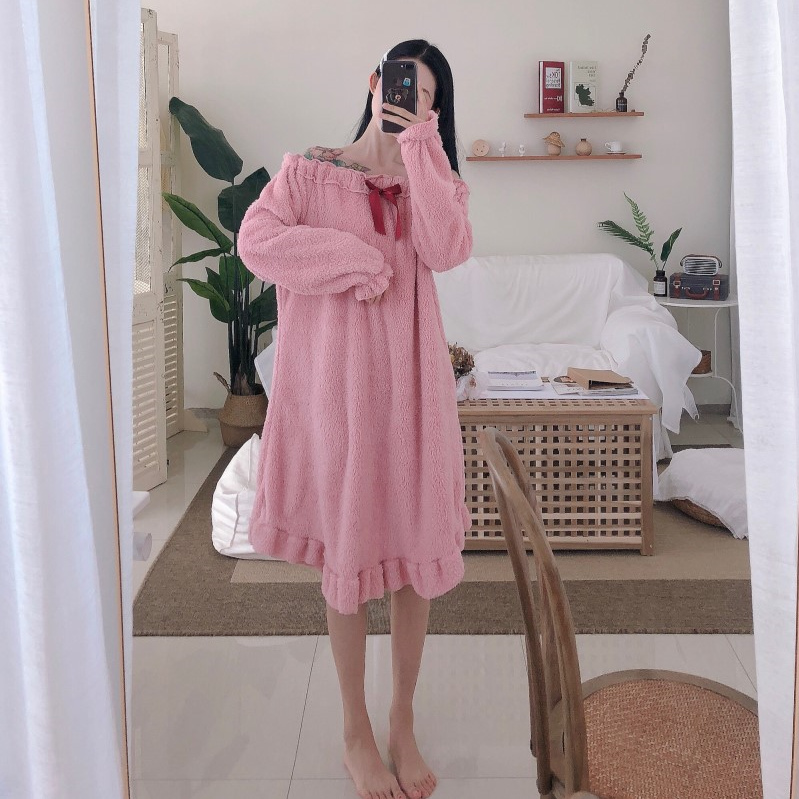 / 2018秋冬新款韓版甜美簡約時尚chic學生百搭蝴蝶結睡裙睡衣家居服