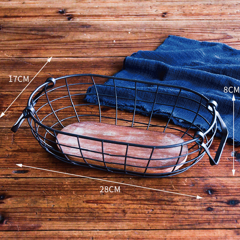 zakka雜貨實木底收納籃桌面鐵藝置物籃創意鐵制收納筐