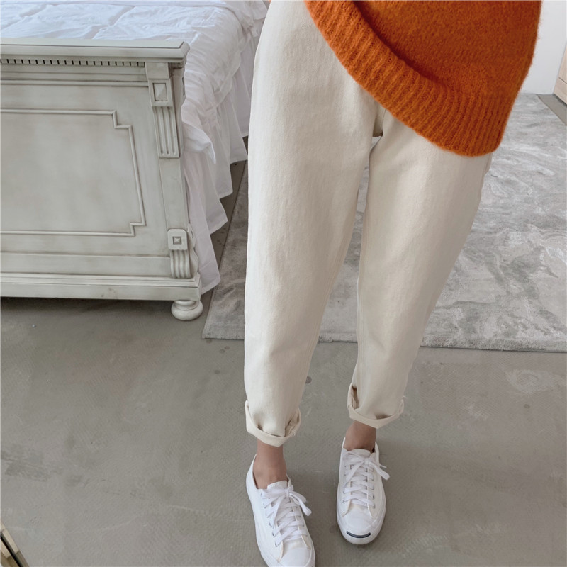港味復古chic風高腰顯瘦寬松休閑褲帥氣束腳純色百搭哈倫褲女夏潮