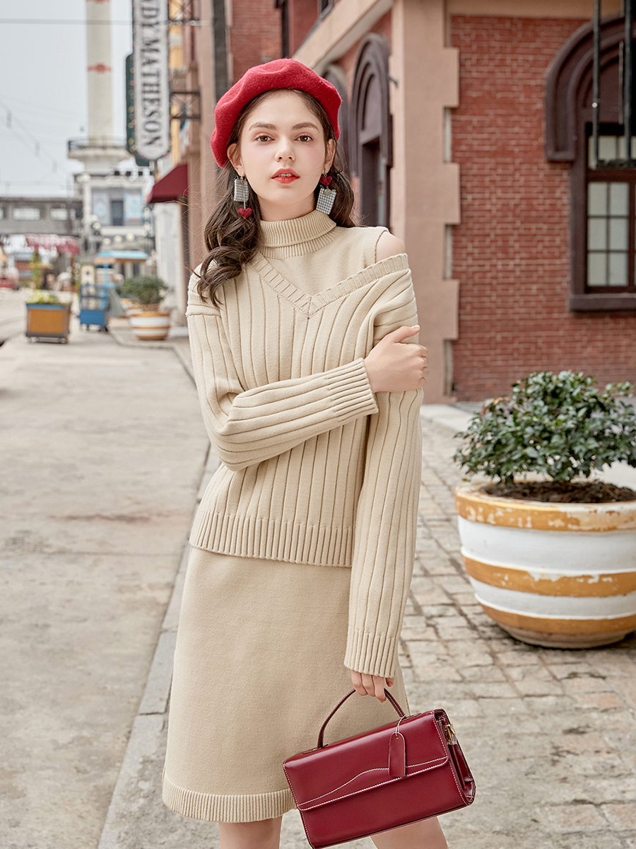 上衣-卡其色|裙子-卡其色