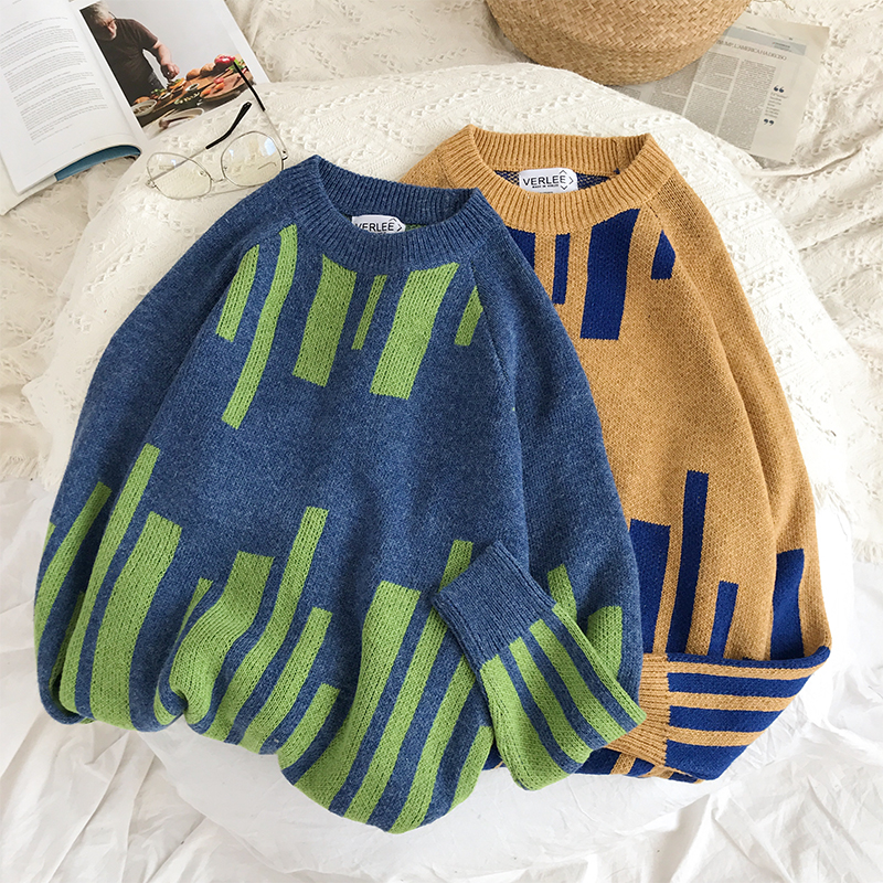 文藝男女店寬松毛衣男士冬季潮流個性韓版秋季圓領針織衫情侶外套