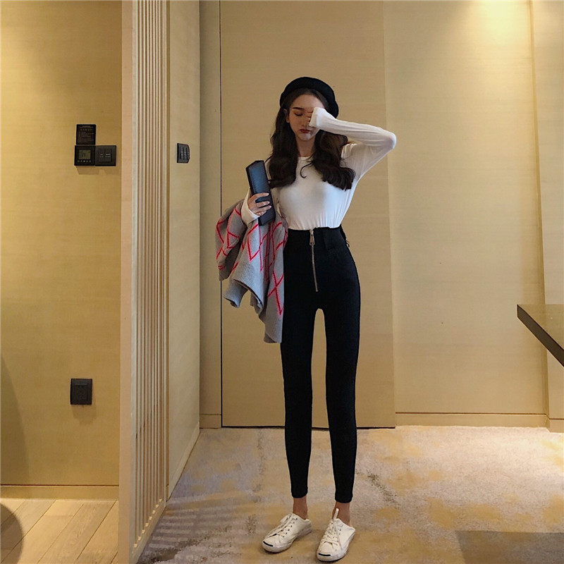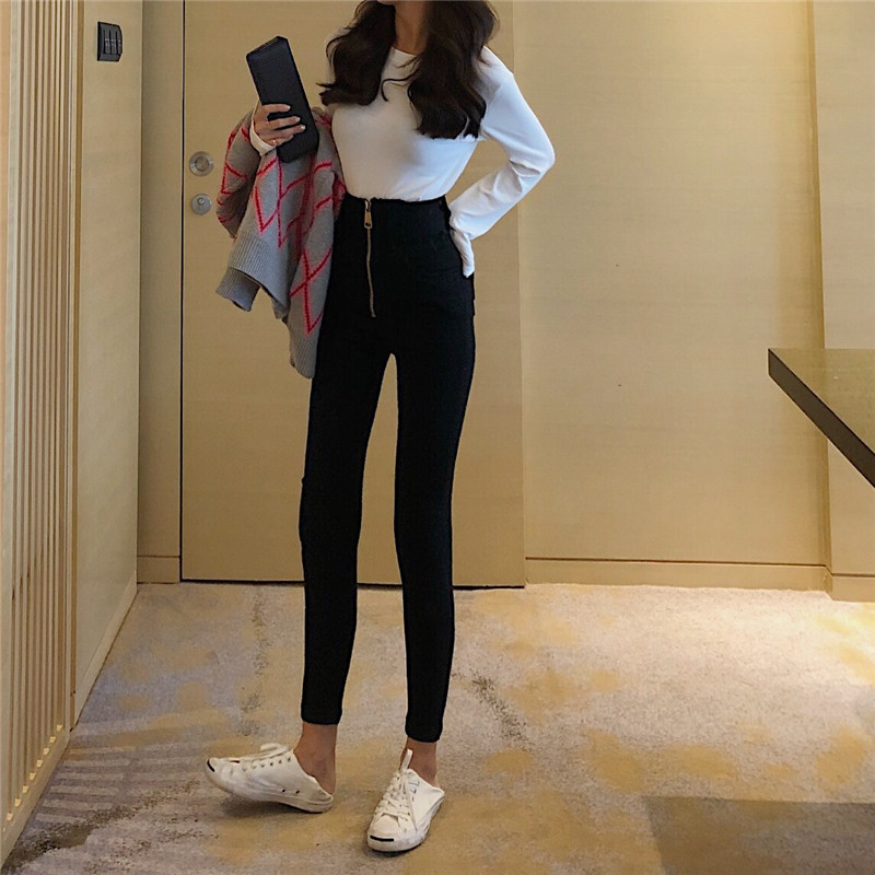 褲子女2018新款韓版修身顯瘦百搭緊身高腰打底長褲洗水彈力小腳褲