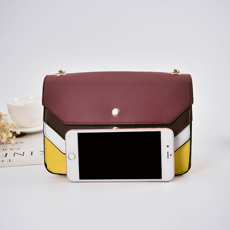 明星同款撞色小方包2017新款潮春女包時尚單肩包鏈條斜挎小包