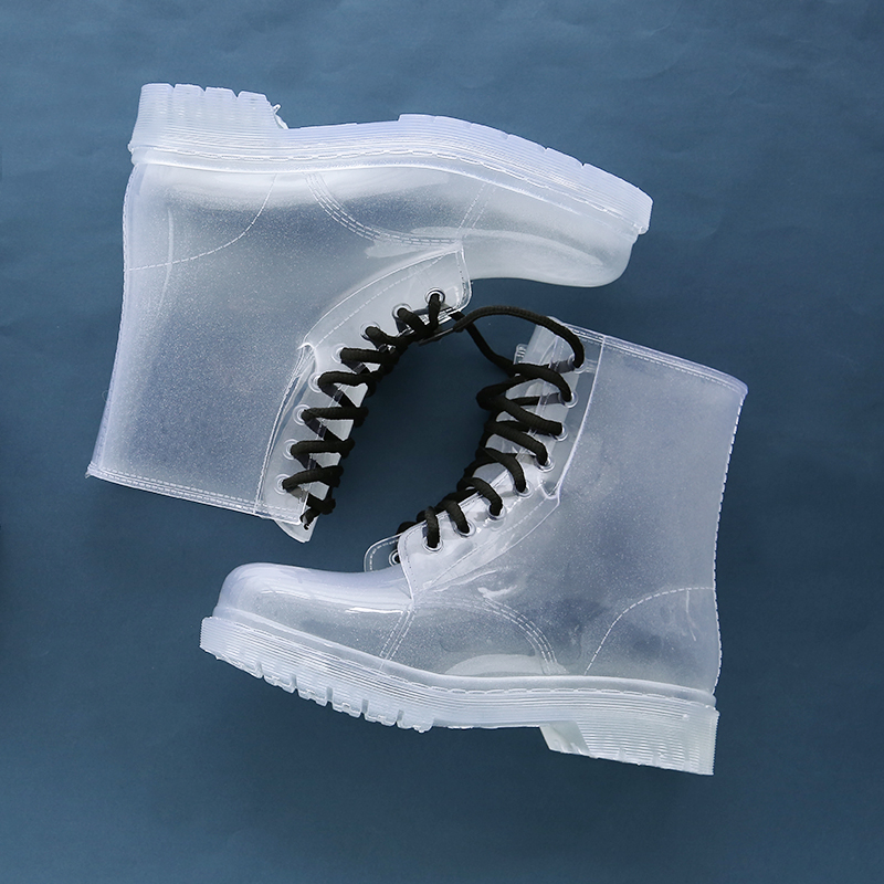 韓版女雨鞋水晶防水果凍鞋女士平跟透明雨鞋馬丁雨靴