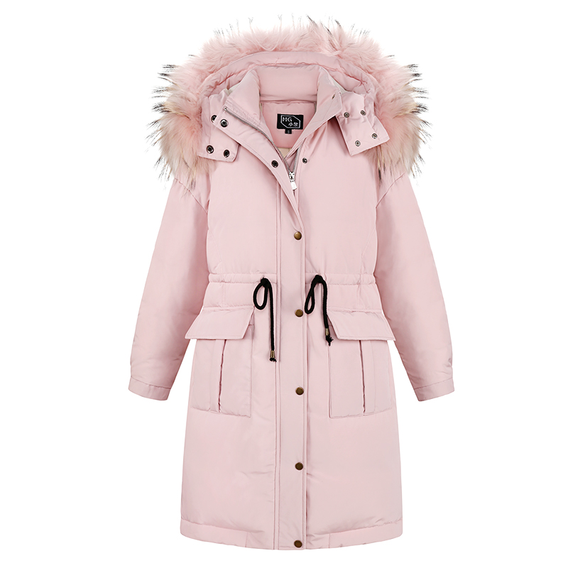 MG小象白鴨絨粉色羽絨服女中長款寬松甜美冬季新款學生加厚外套潮