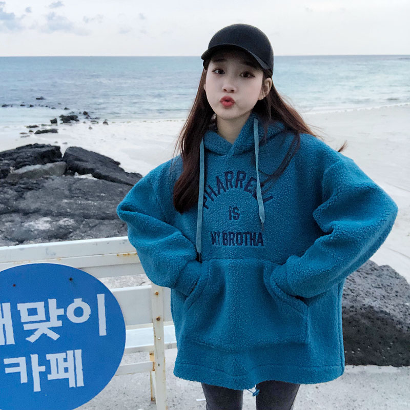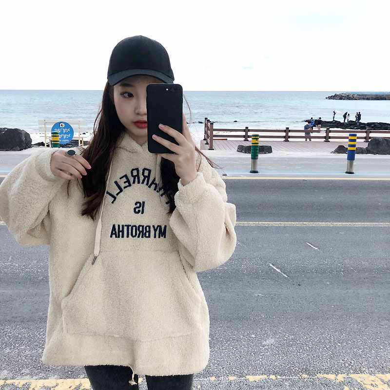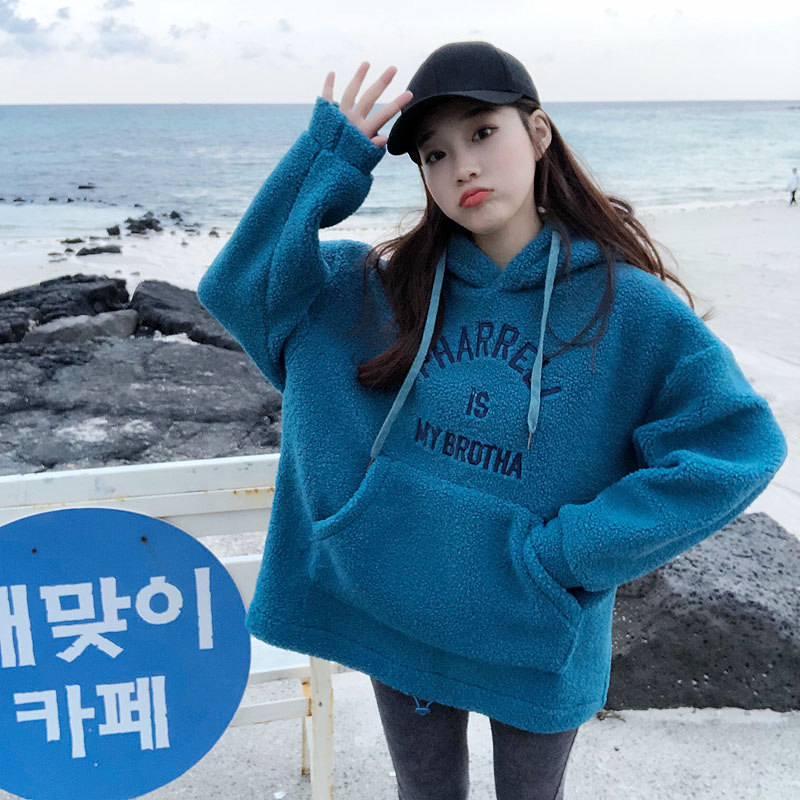 新款chic寬松套頭加厚刺繡小清新韓版時尚百搭衛衣外套連帽上衣女