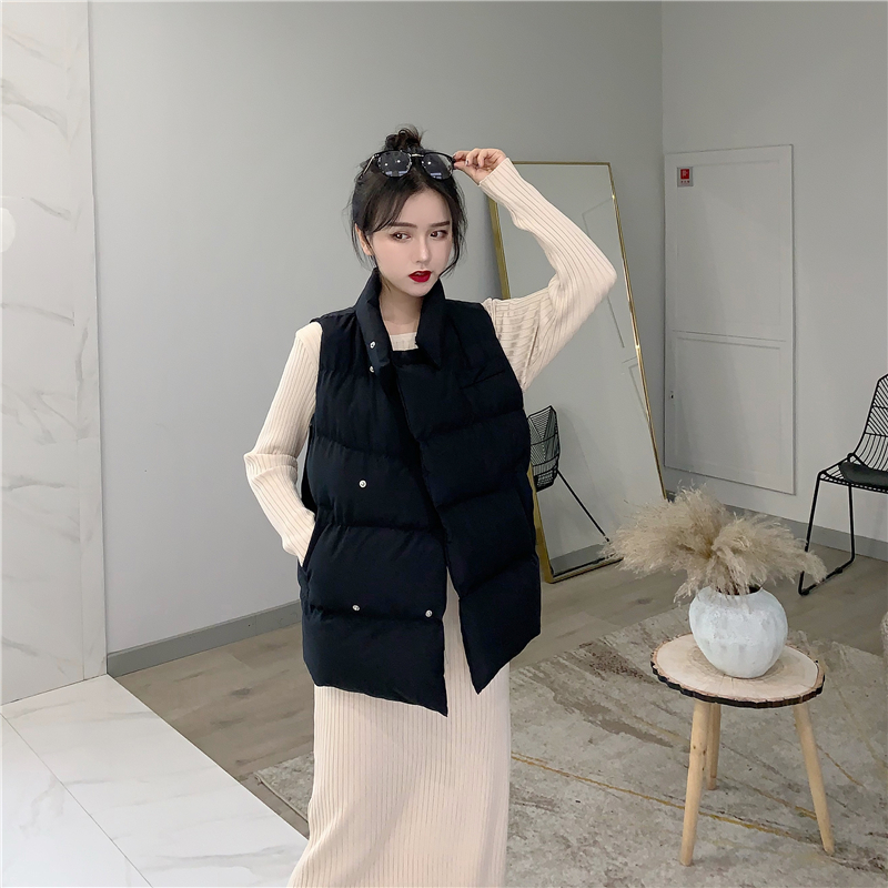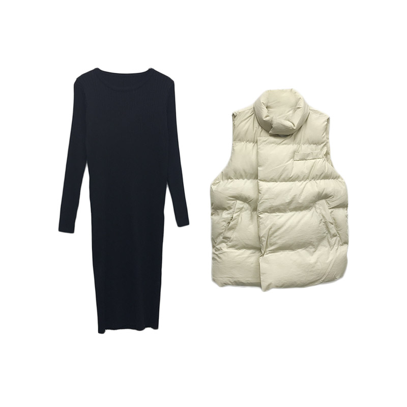 氣質港味百搭面包服棉衣馬甲外套女+時尚圓領百搭長款針織連衣裙