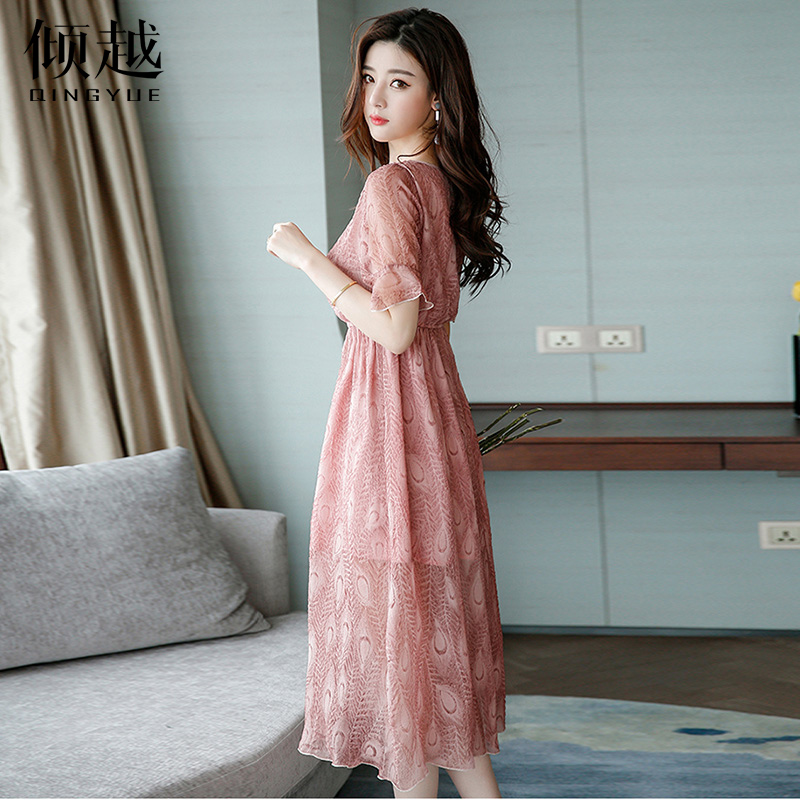 / 夏季短袖連衣裙女韓版修身顯瘦雪紡長裙甜美仙女裙度假裙2017新款