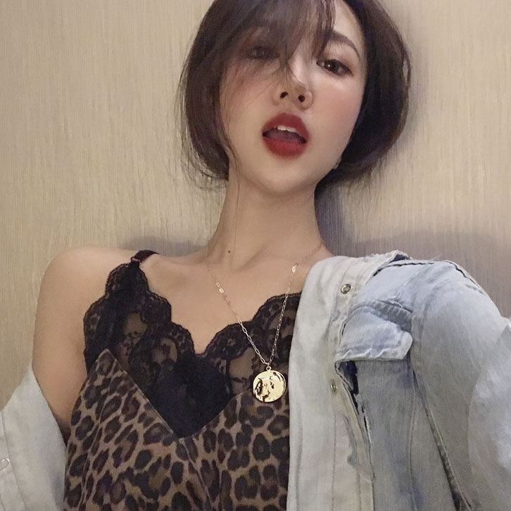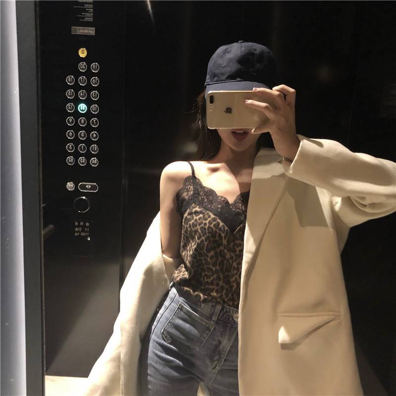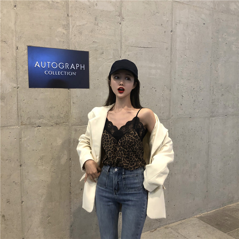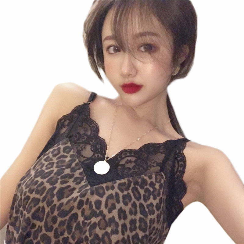 / 2018新款韓版時尚蕾絲拼接豹紋吊帶背心女士基礎性感氣質內搭上衣