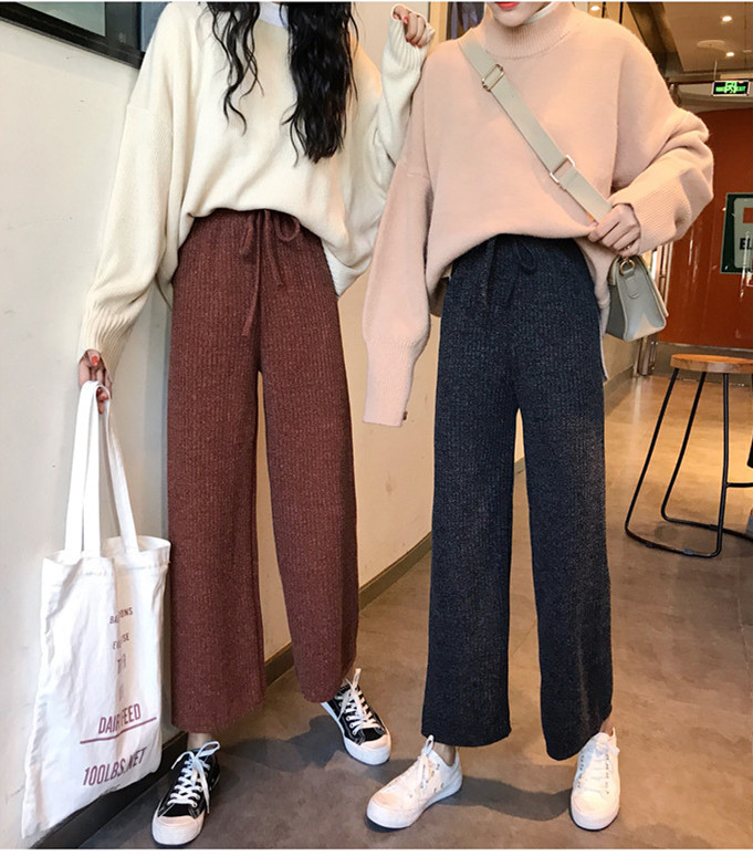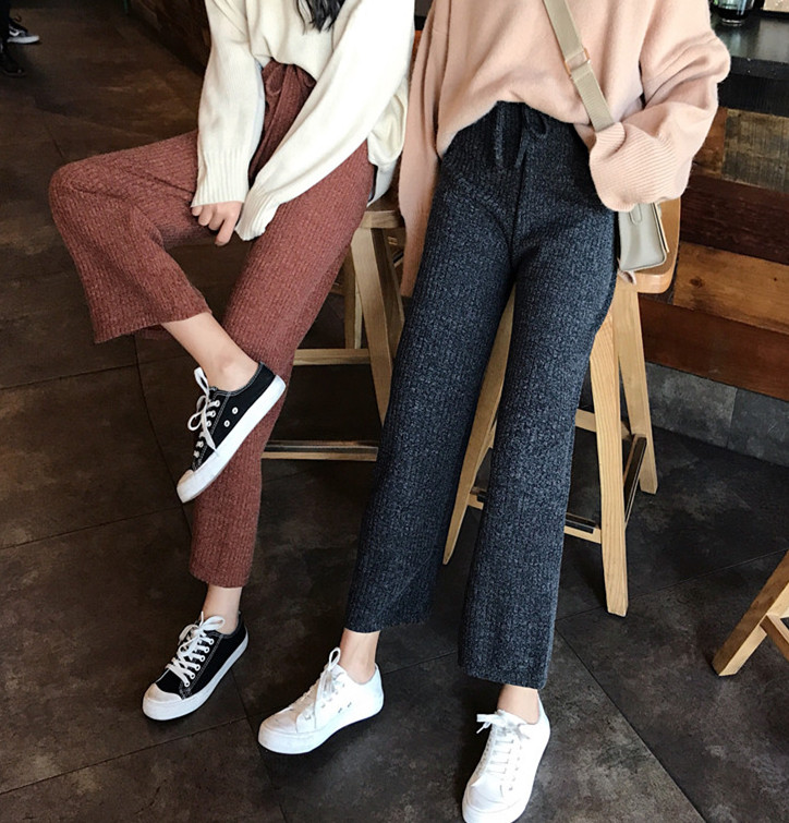/ 褲子女秋冬新款韓版時尚chic九分褲復古休閑寬松百搭直筒針織褲潮