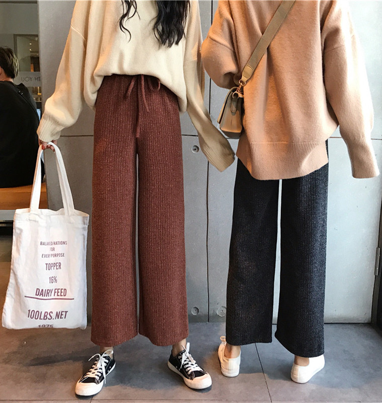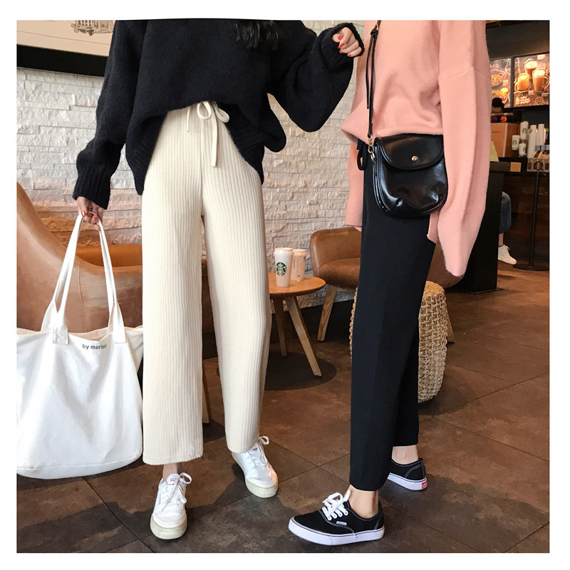 褲子女秋冬新款韓版時尚chic九分褲復古休閑寬松百搭直筒針織褲潮