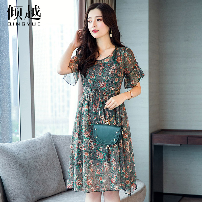 / 碎花雪紡連衣裙女長裙2017夏季新款時尚氣質韓版顯瘦中長款大擺裙