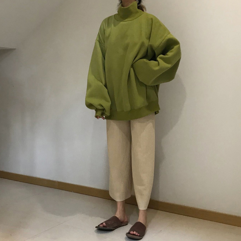/ 復古韓國chic牛油果綠高領燈籠袖加厚加絨保暖套頭衛衣女2018新款