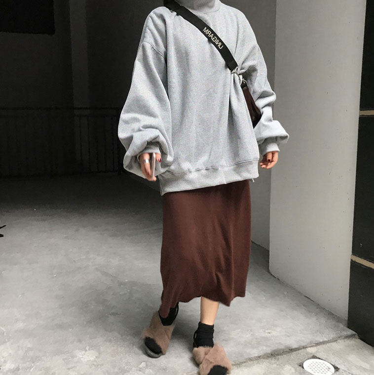 衛衣2018新款女長袖韓版寬松顯瘦oversize印花半高領慵懶長款裙子