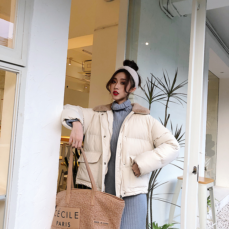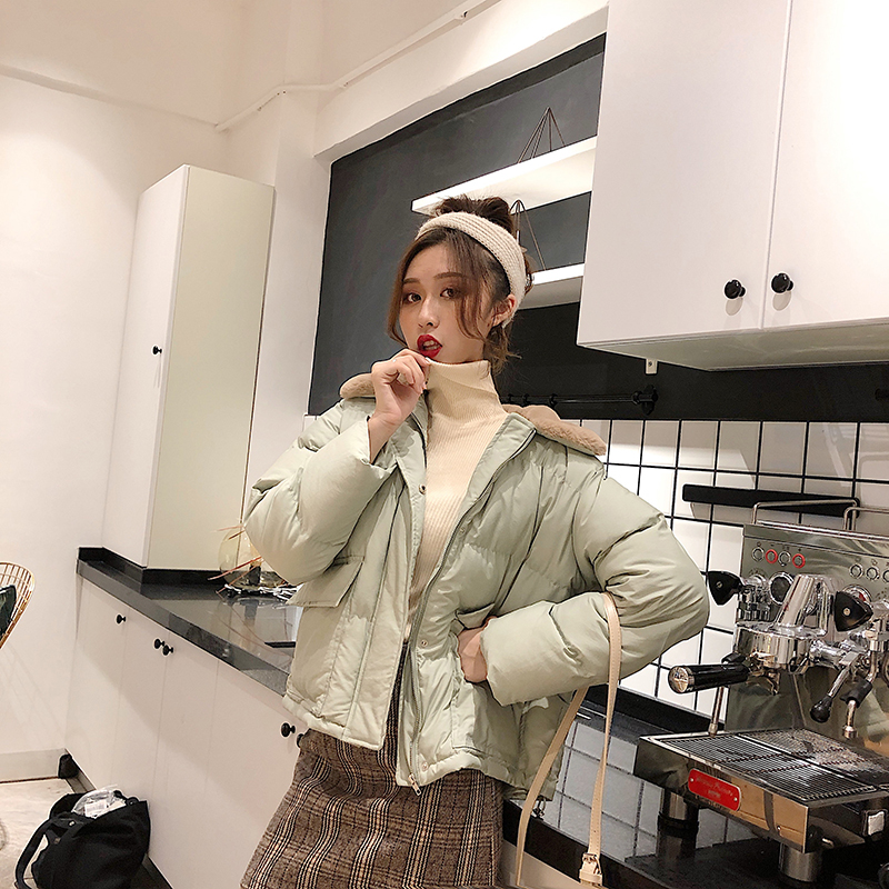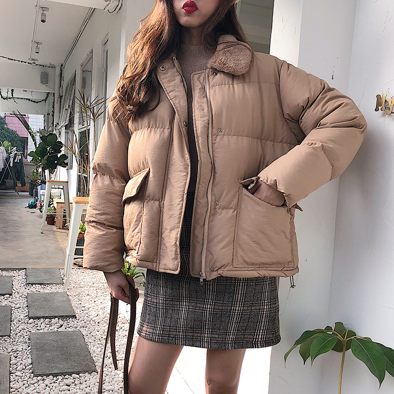 復古韓國chic冬季新款毛領加厚保暖夾棉開衫外套女面包服棉衣棉服