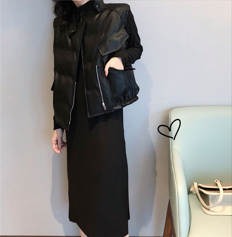 / 洋氣女神套裝秋冬新款pu皮加厚棉馬甲+百搭中長款連衣裙女分開拍