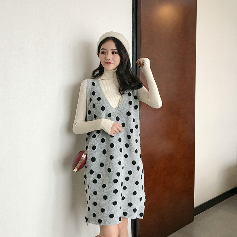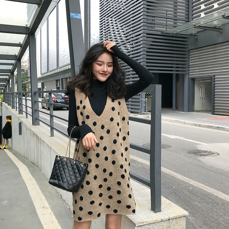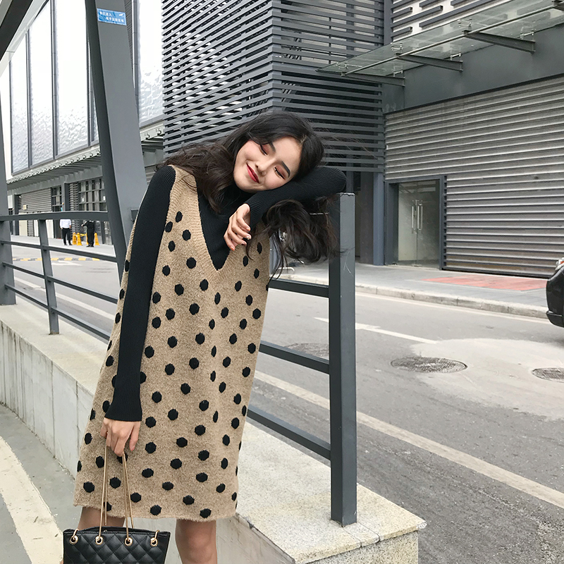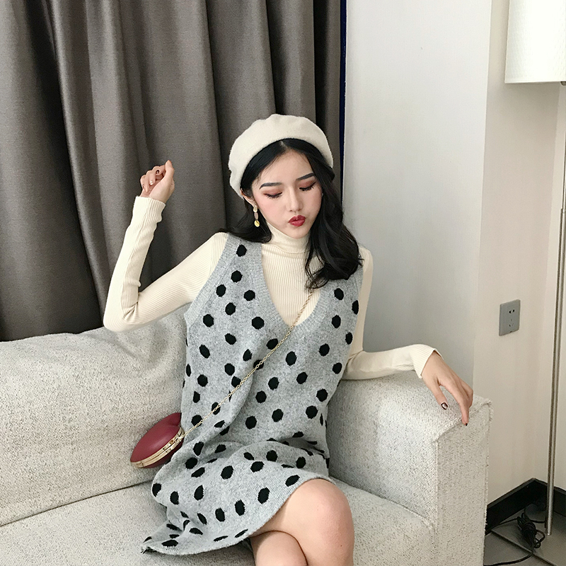 2018冬季新款韓版時尚港風套裝V領背心裙長袖打底衫chic兩件套女