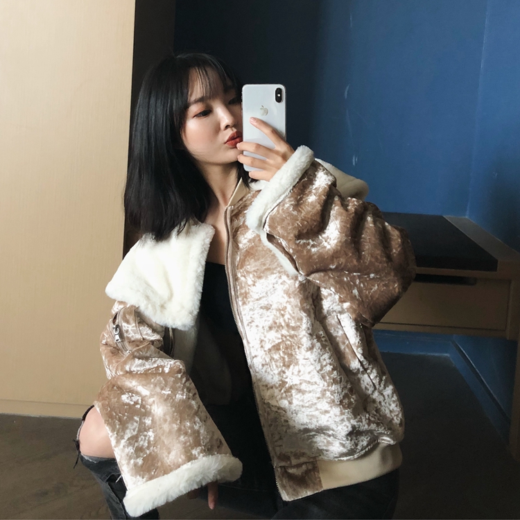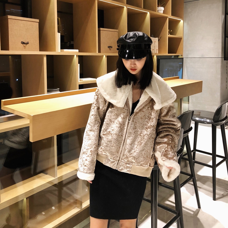 / 設計感新款冬季時尚韓版百搭寬松絨面毛毛一體加厚外套領子可拆卸