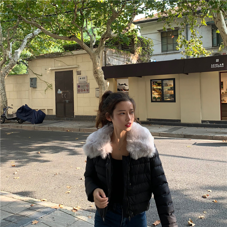 / 2018秋冬新款韓版時尚百搭加厚女裝毛毛領短款保暖棉服棉衣外套潮