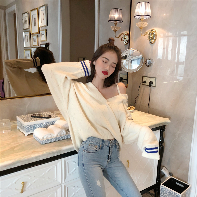 怕冷或是保守的MM可以把衣領翻上去就變成了基礎款V領毛衣