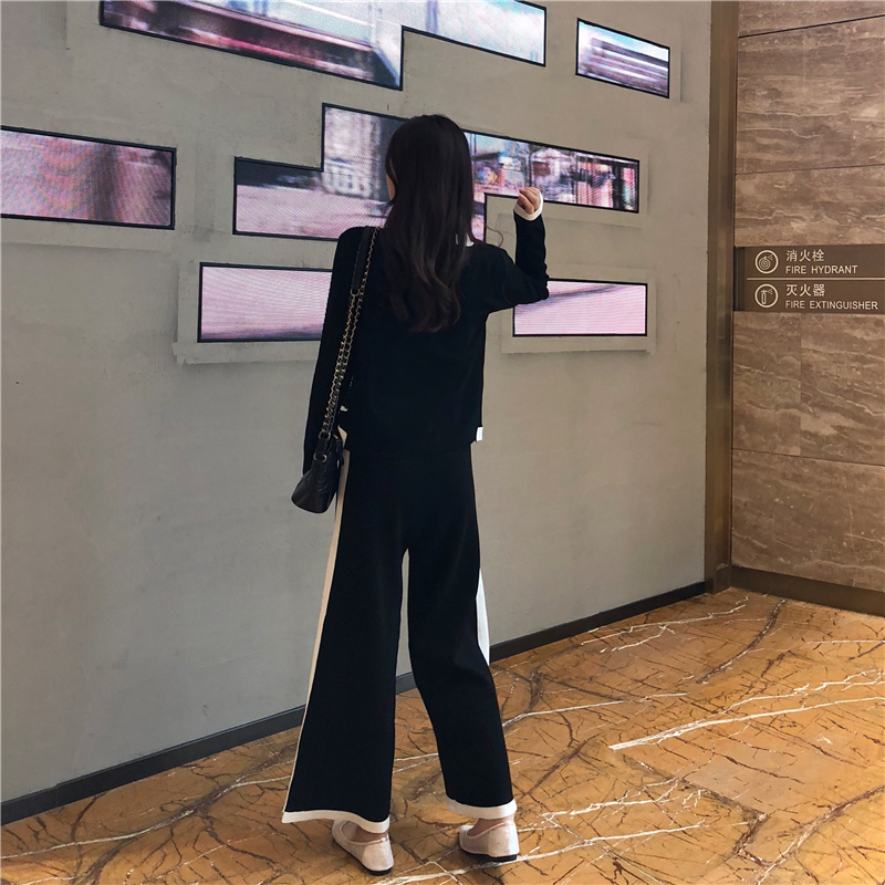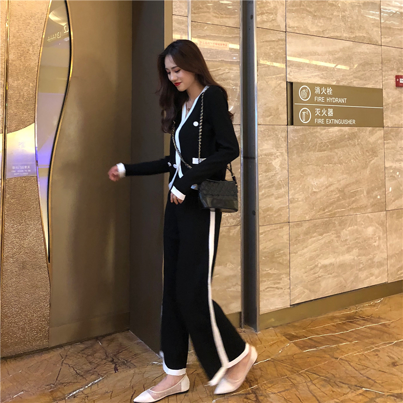 / 2018新款韓版時尚兩件套小香風雙排扣開衫外套長褲闊腿褲氣質套裝