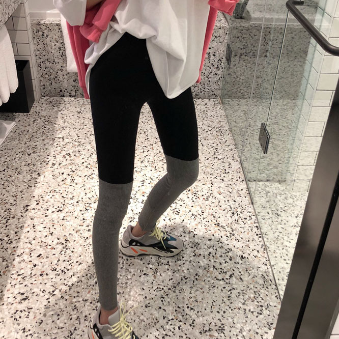 / 2018秋冬新款百搭拼色彈力顯瘦打底運動褲顯瘦小腳褲女2018新款潮