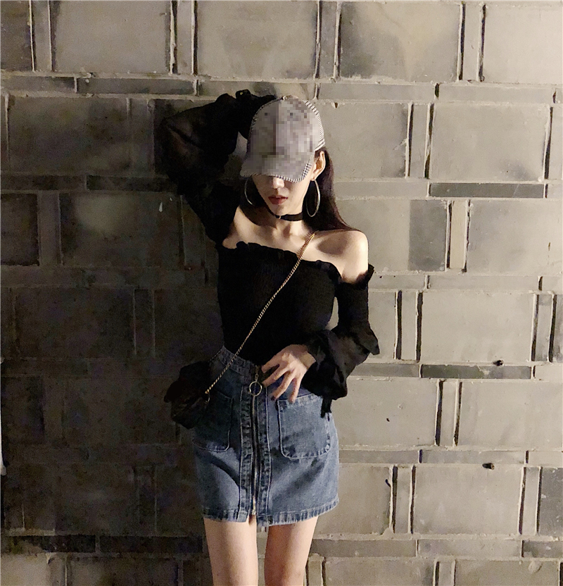 / 小心機新款韓版港風時尚百搭一字領漏肩簡約拼接設計假兩件雪紡衫
