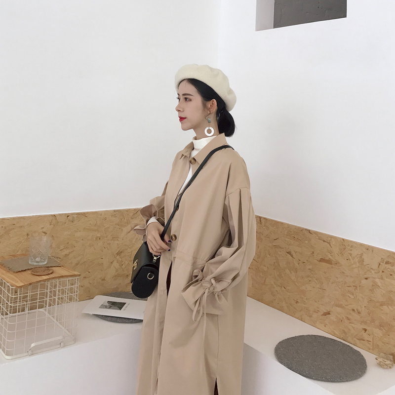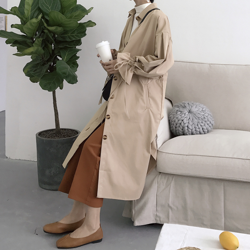 / 小香風新款韓版秋裝百搭寬松顯瘦復古氣質長款純色長袖風衣外套女