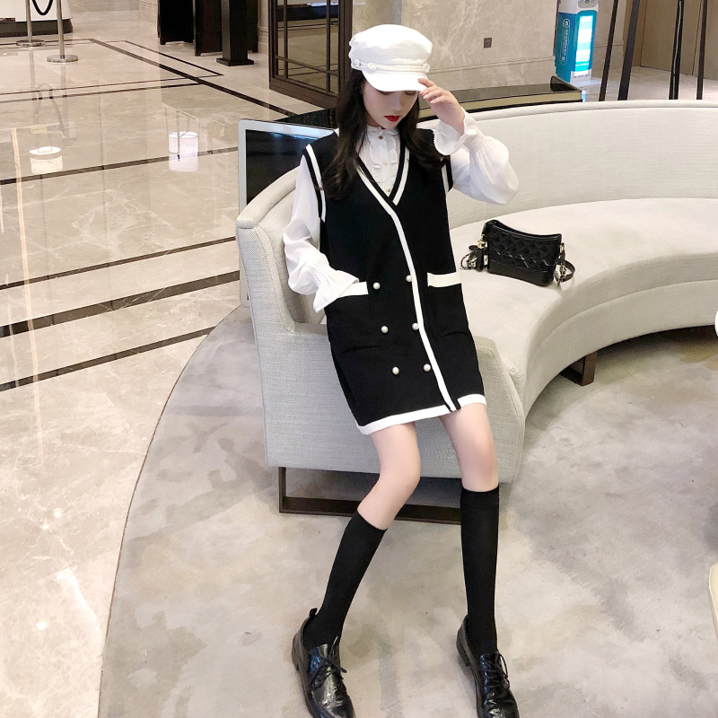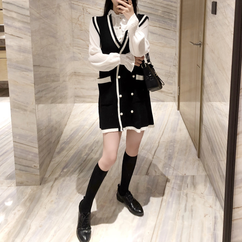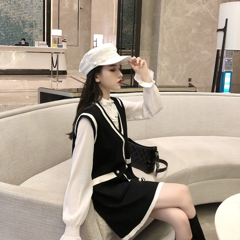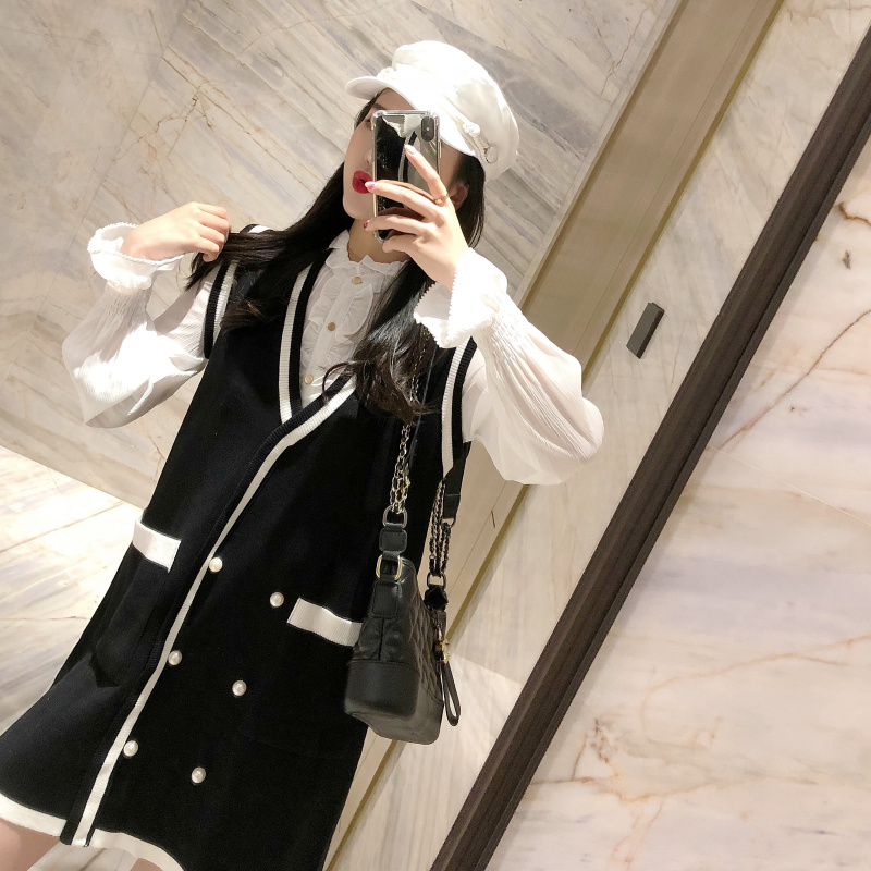 / 秋季套裝女名媛小香風時尚雪紡襯衫新款雙口袋毛衣裙韓版兩件套潮