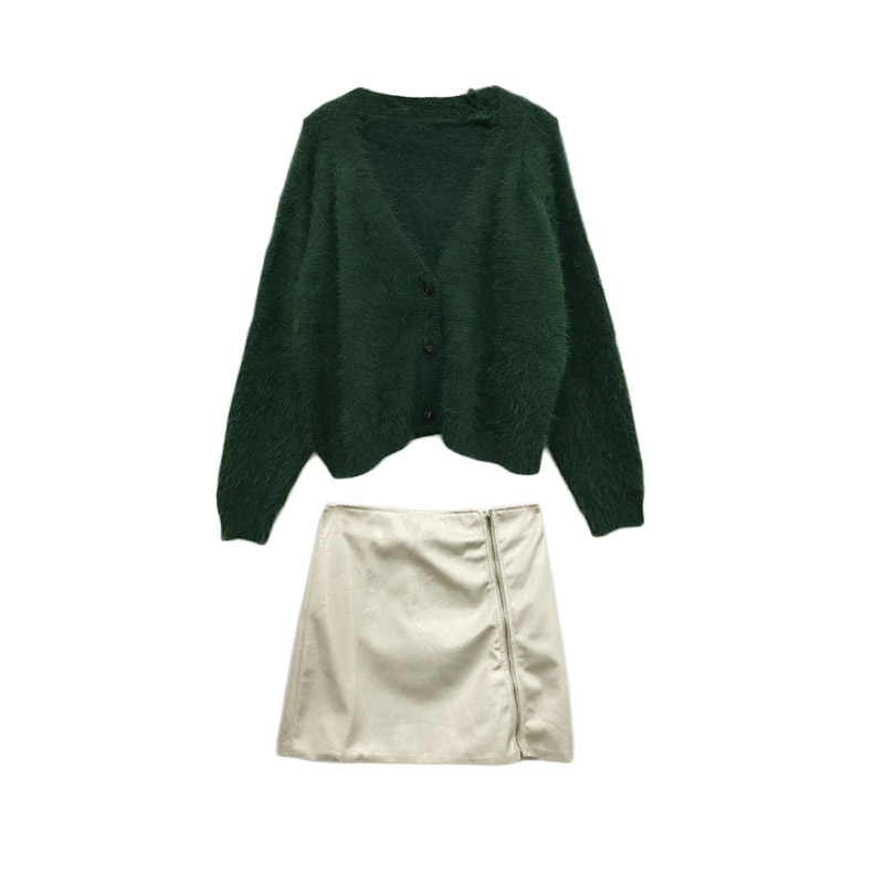 / 針織衫秋冬慵懶寬松短款毛衣女2018新款外套+高腰包臀皮裙半身裙