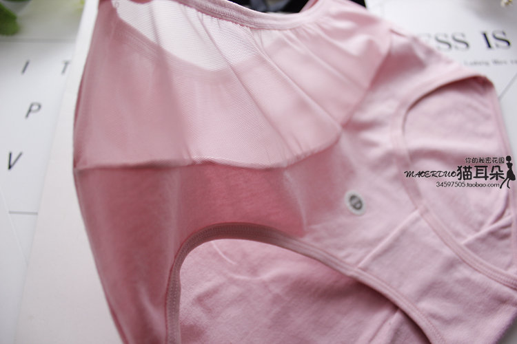 又是一款棉質的小內褲 干凈的純色棉質面料 拼接微透的夢幻網紗 腰部的網紗給整件內褲增條了無限風采 素雅恬靜 簡單大氣 穿梭于都市的你 知性干練 清爽清爽的色調 適合氣質的你 柔軟的棉質 貼身舒適 中腰的設計 把你的小蠻腰包裹的很好