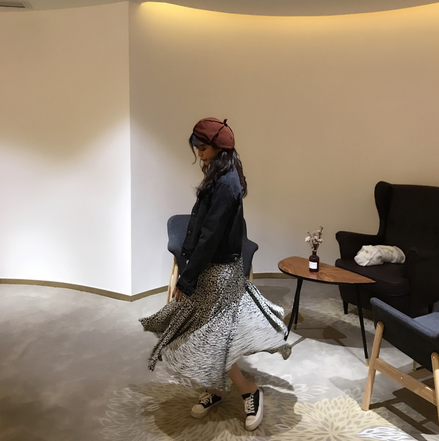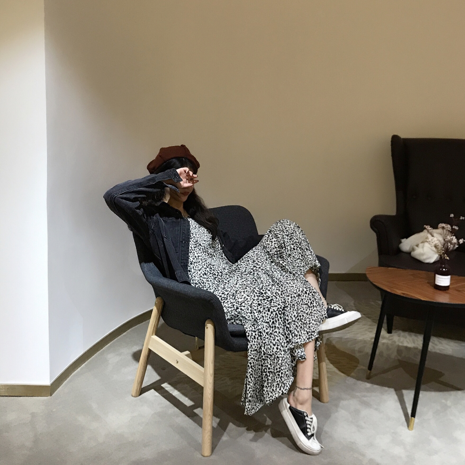 港味女神套裝秋冬新款色洗水牛仔外套+豹紋不規則長裙時尚兩件套